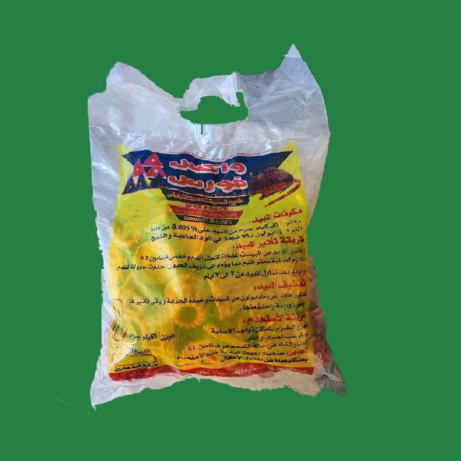 يحتوى كل كيلو جرام من المبيد على 0.005%من مادة البرومادايون بالاضافة الى المواد الجاذبة والشمع .